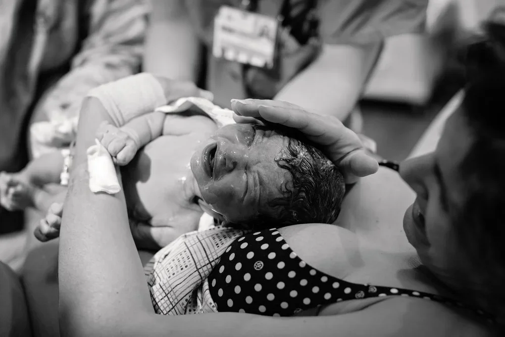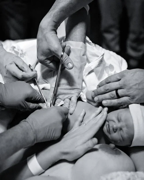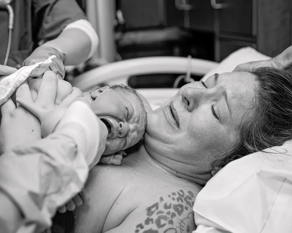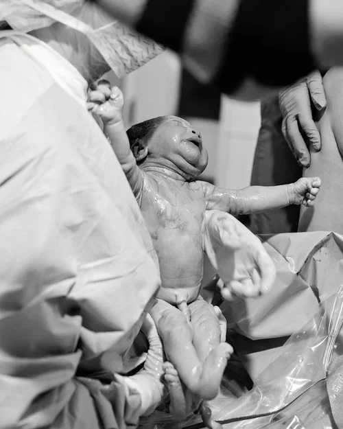 Tive duas experiências diferentes de parto com minhas filhas, mas o que mais lembro é a emoção de finalmente ver o bebê — e o que mais amo fotografar é o seu rosto no momento em que isso acontece. Quando você chega do outro lado e encontra seu bebê. Seja acordando de um estado de sonho primitivo, ou separada por uma cortina cirúrgica, o bebê finalmente chega — e é um alívio magnífico.